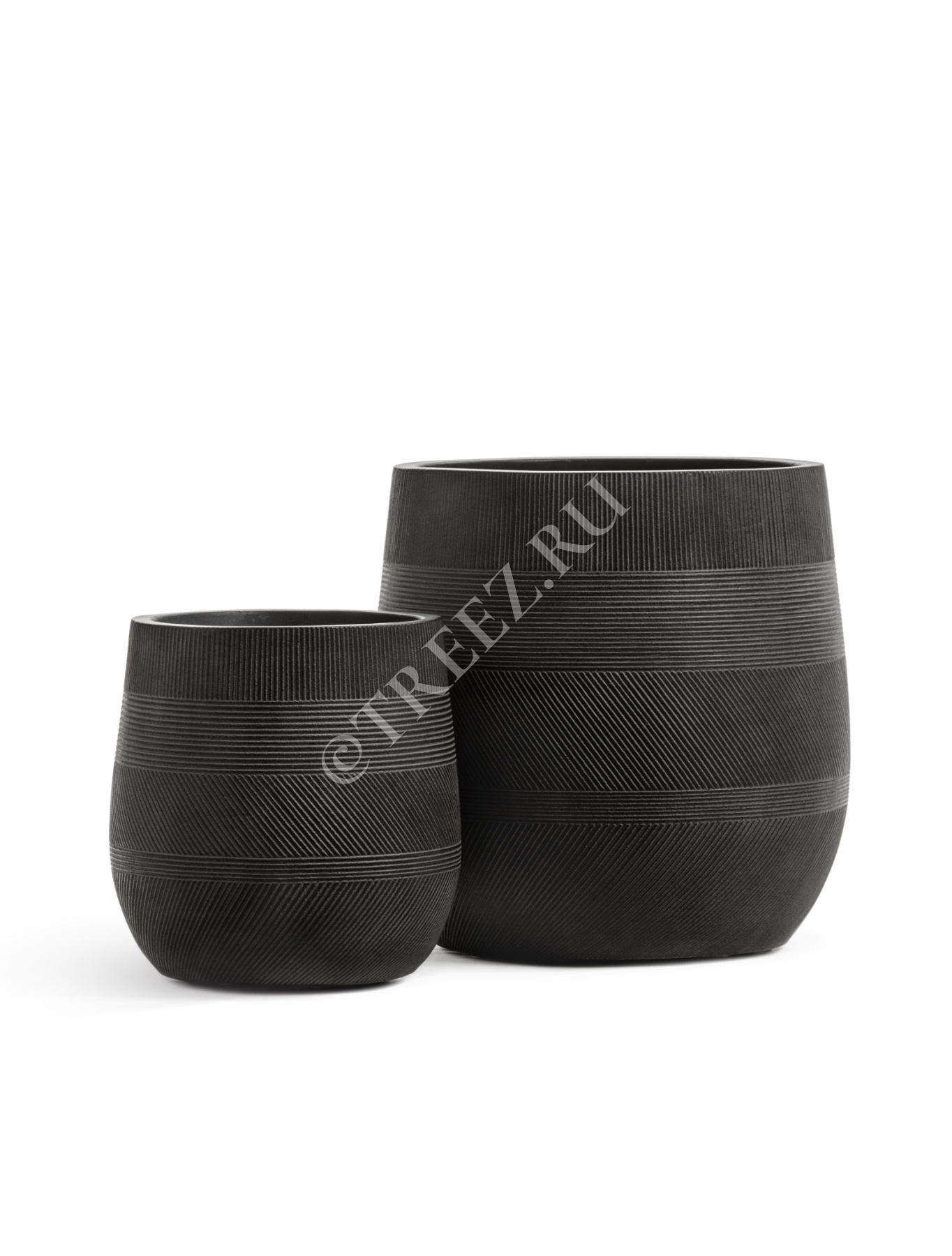 Кашпо TREEZ ERGO - Graphics - Высокая округлая чаша - Чёрный графит