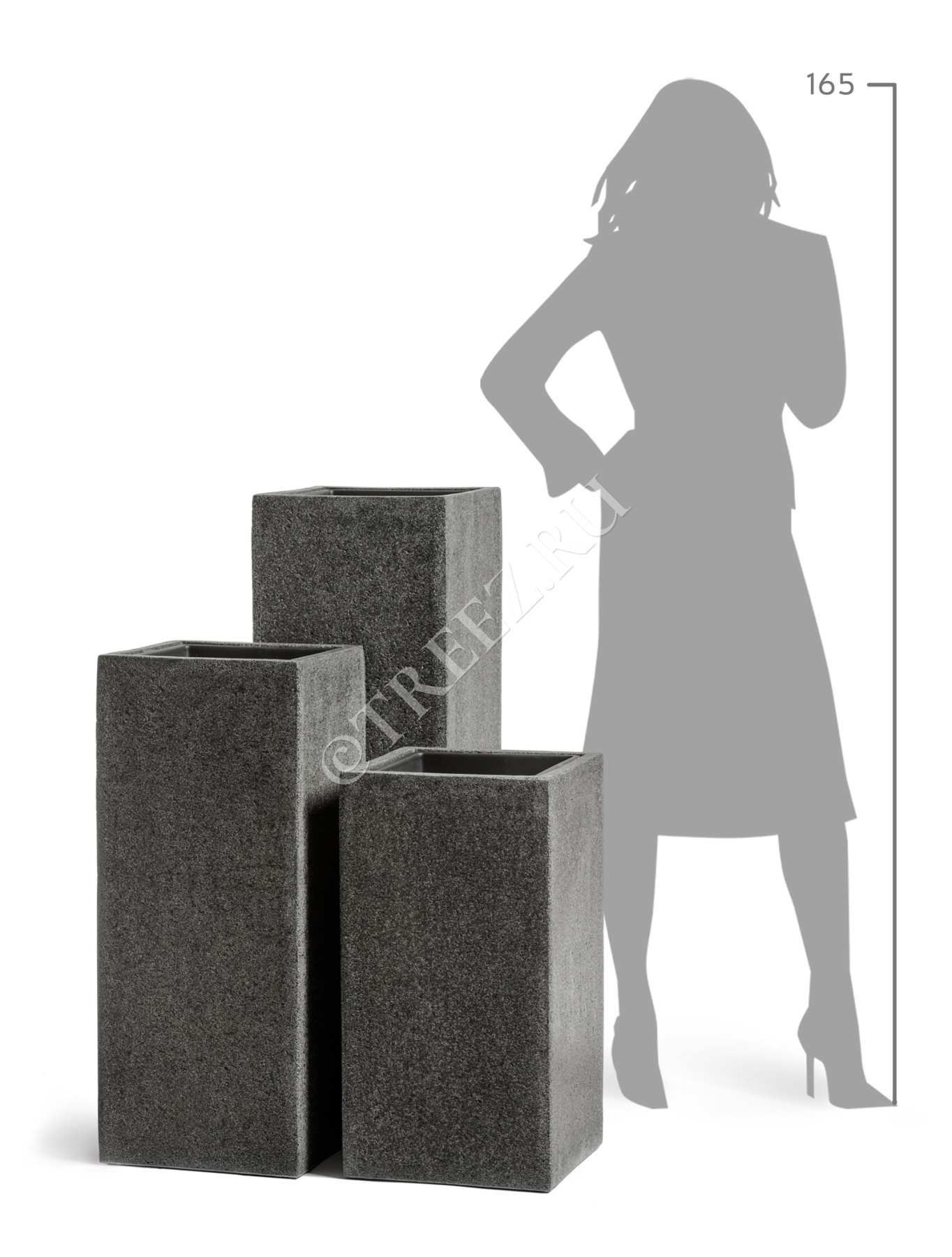 Кашпо TREEZ Effectory - Stone - Высокий куб - Тёмно-серый камень