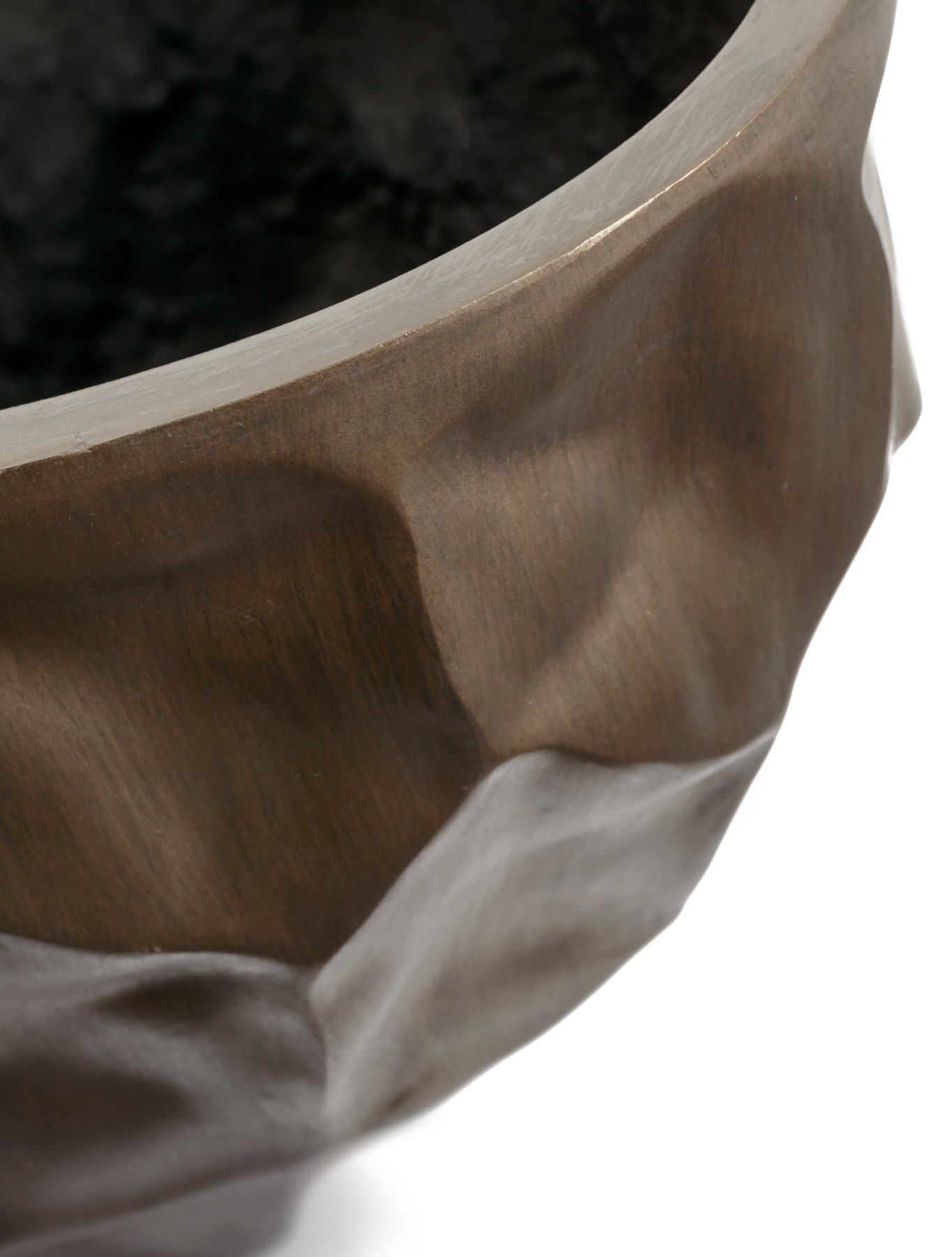 Кашпо TREEZ Effectory - Metal - Плоская сфера Design Crumple - Чернёная бронза