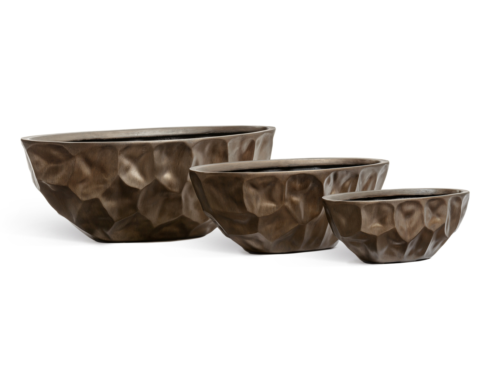 Кашпо TREEZ Effectory - Metal - Высокая лодка Design Crumple - Чернёная бронза