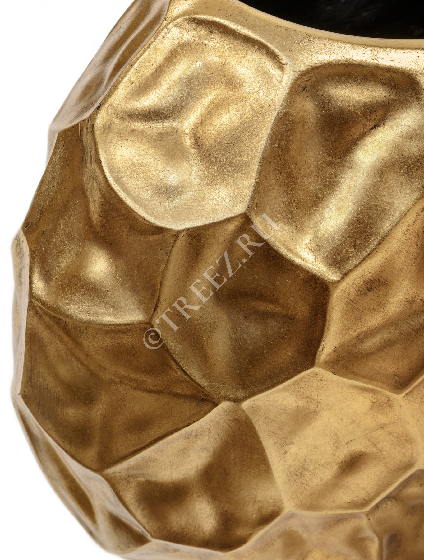 Кашпо TREEZ Effectory - Metal - Плоская сфера Design Crumple - Сусальное золото