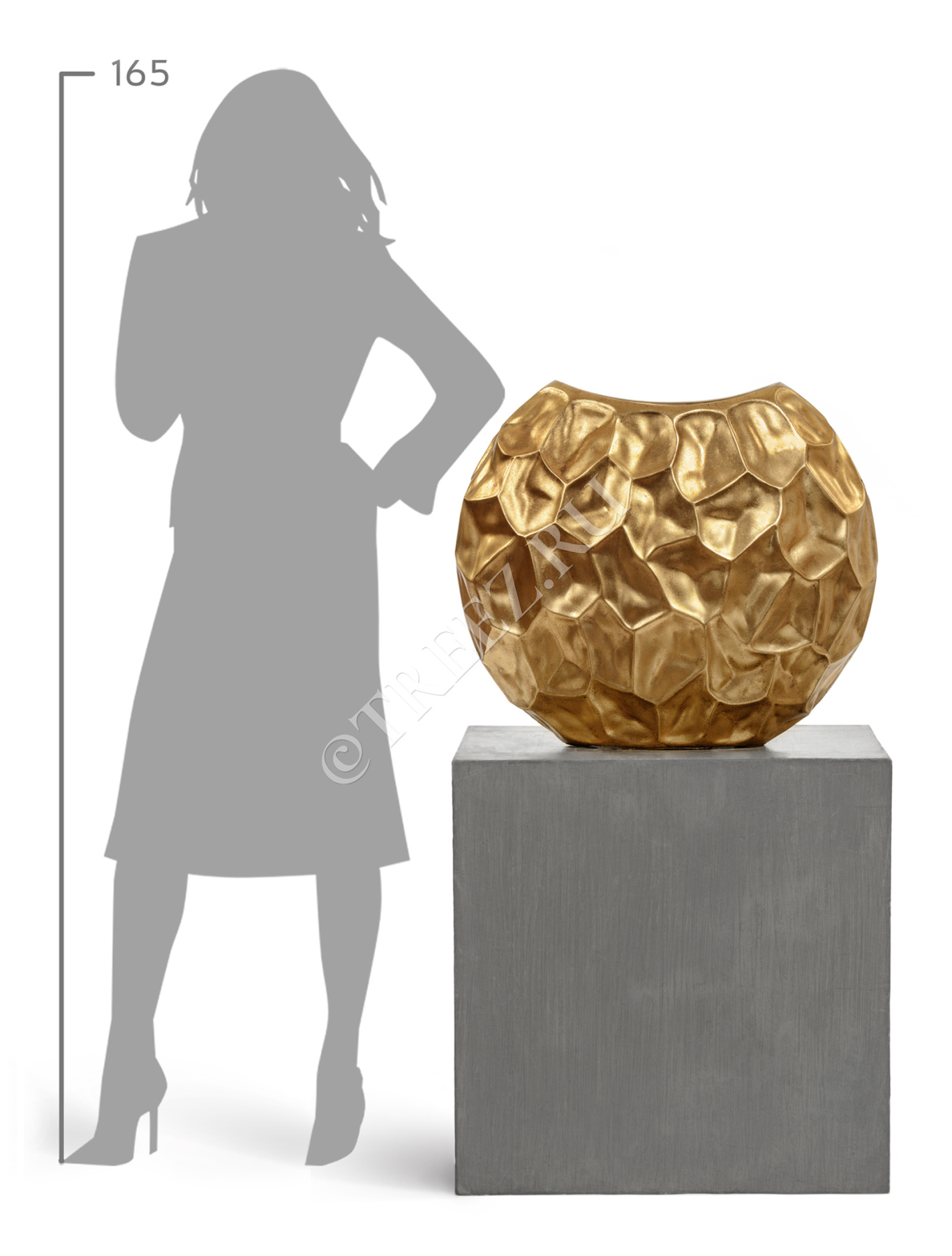 Кашпо TREEZ Effectory - Metal - Высокий округлый конус Design Crumple - Сусальное золото