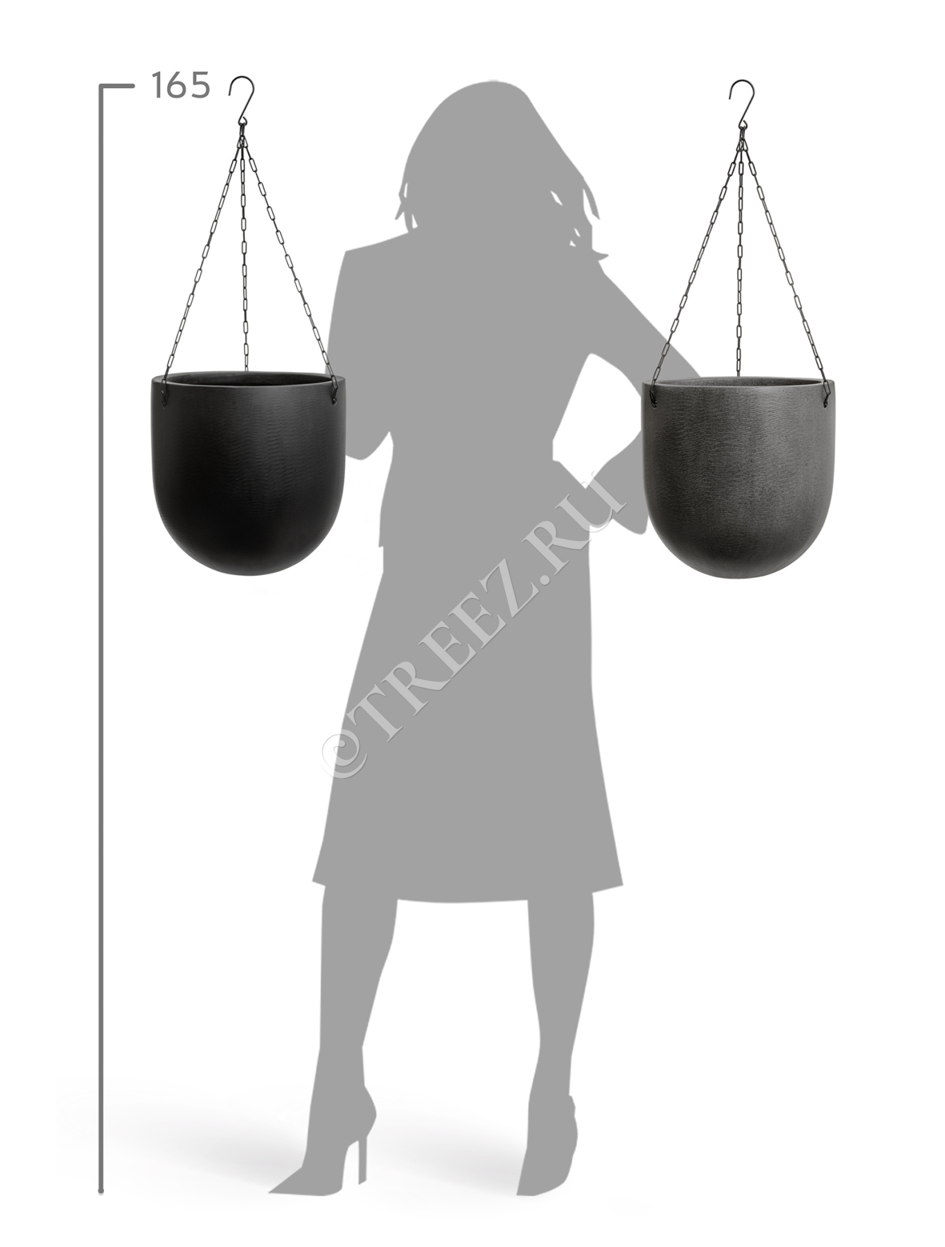 Кашпо TREEZ Effectory - Black Stone - Чаша большая подвесная - Антрацит