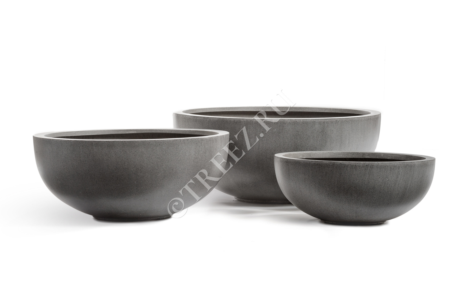 Кашпо TREEZ Effectory - Beton - Низкая сферическая чаша - Тёмно-серый бетон