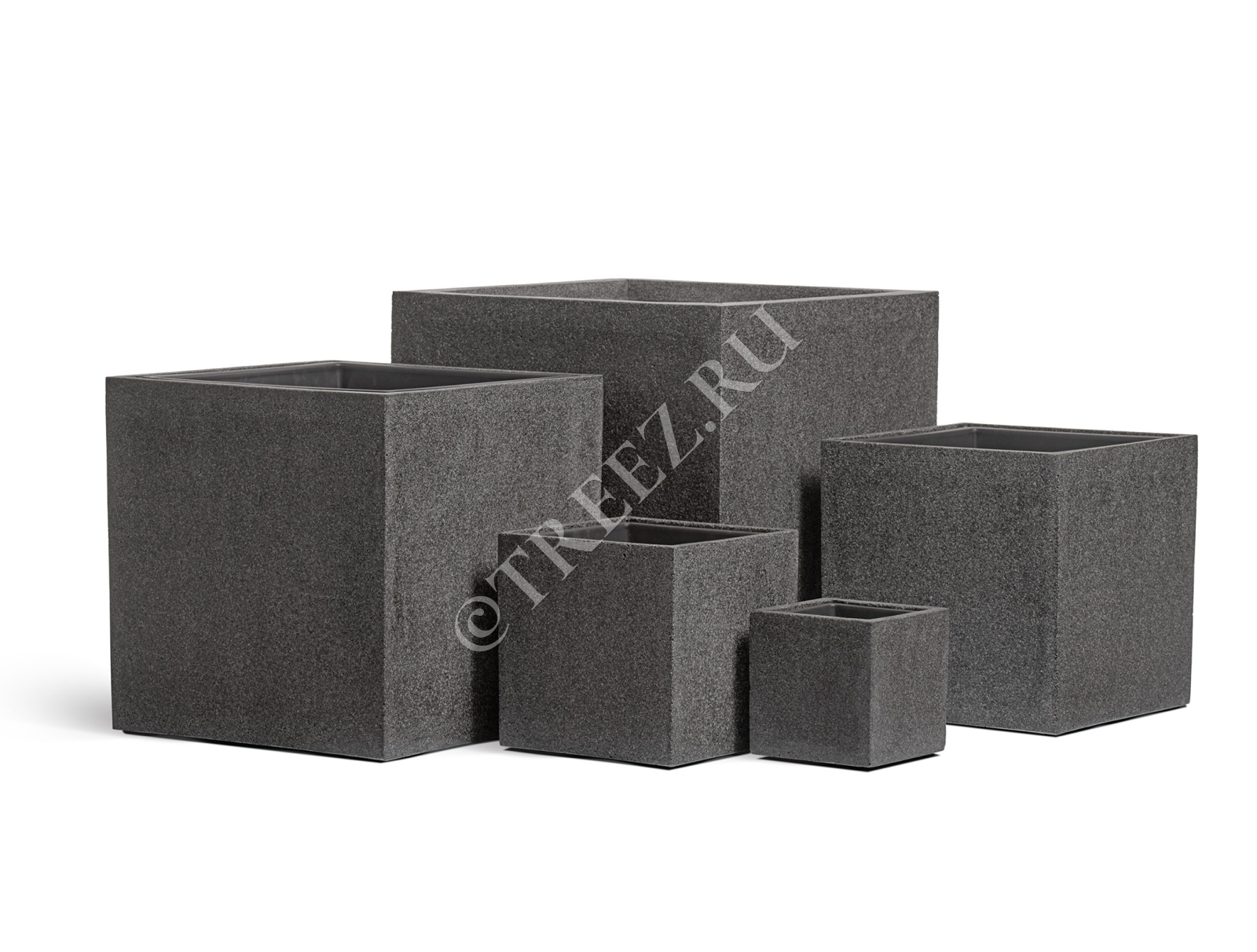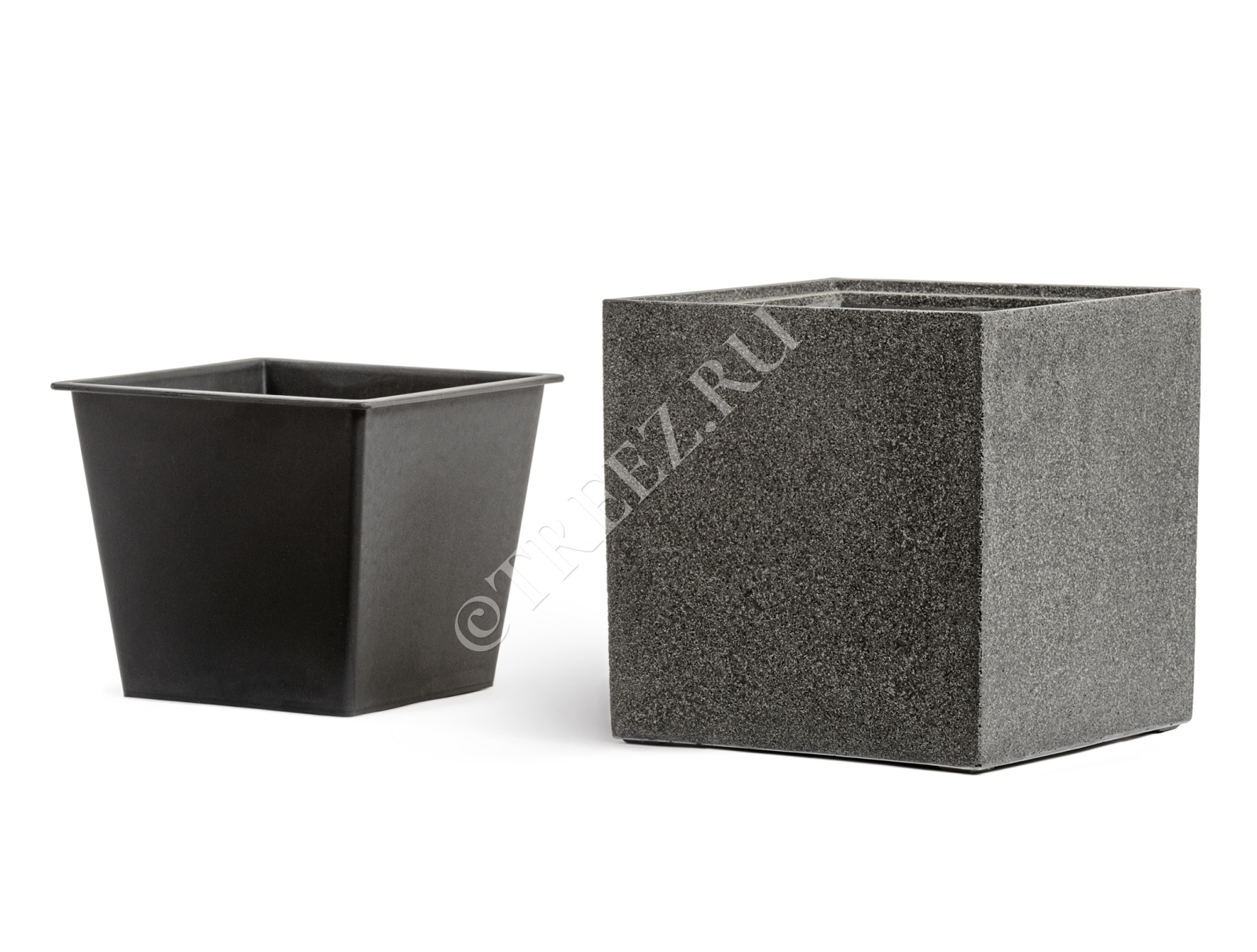 Кашпо TREEZ Effectory - Stone - Куб - Тёмно-серый камень