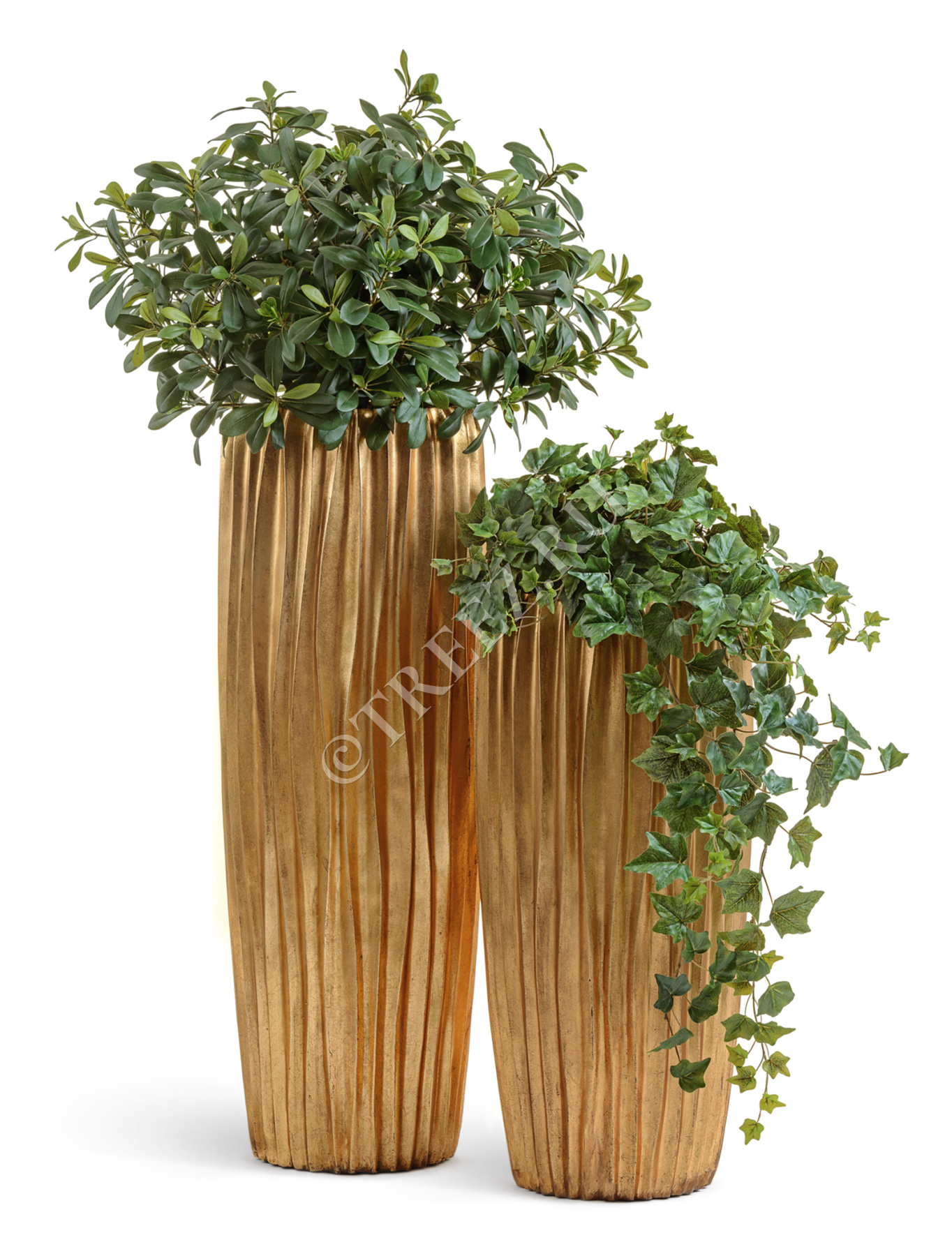 Кашпо TREEZ Effectory - Metal - Высокий конус Giant Design Wave - Сусальное золото