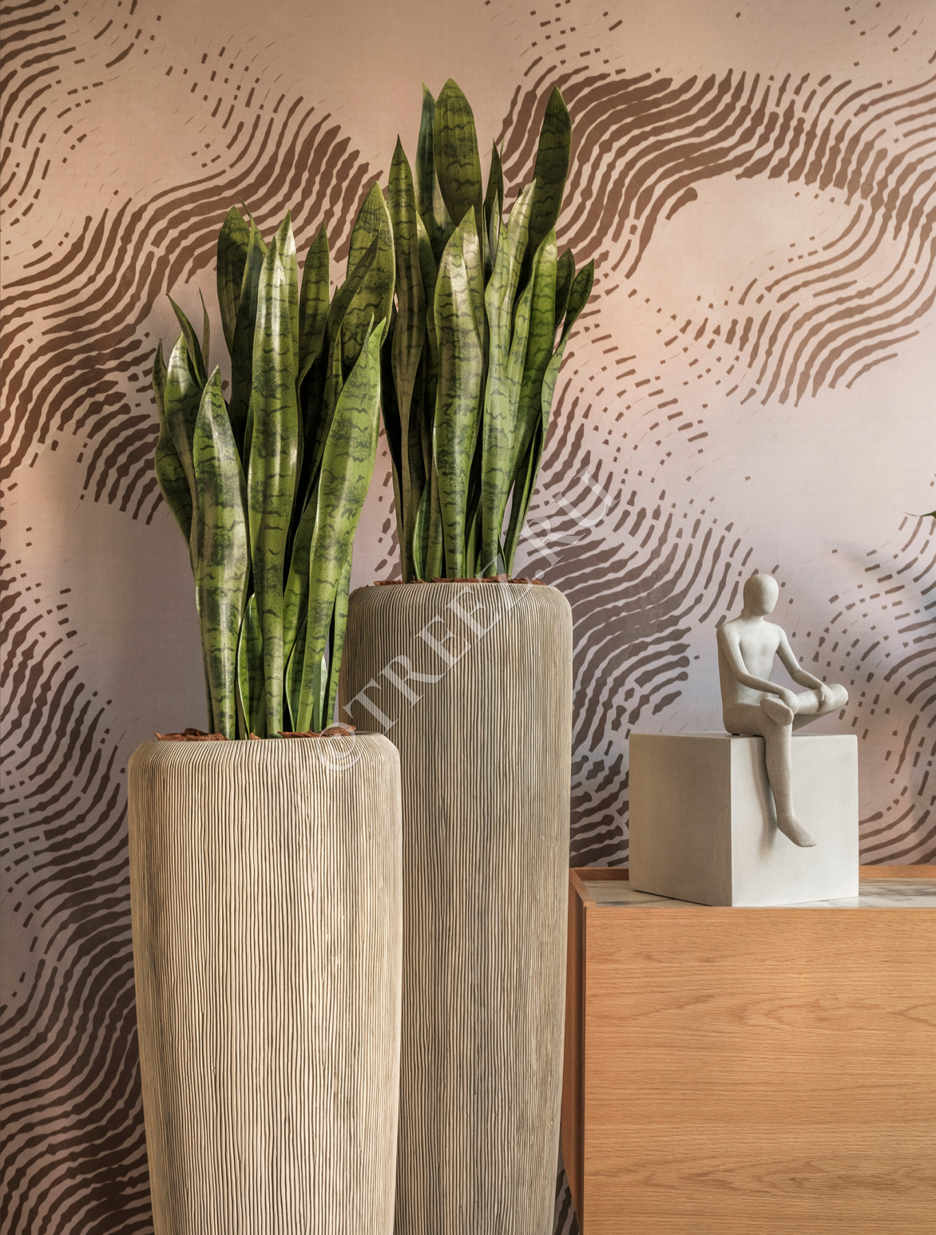 Сет № 21 - Композиция с Филодендроном и Сансевиерией в кашпо Treez Effectory Stone Чаша