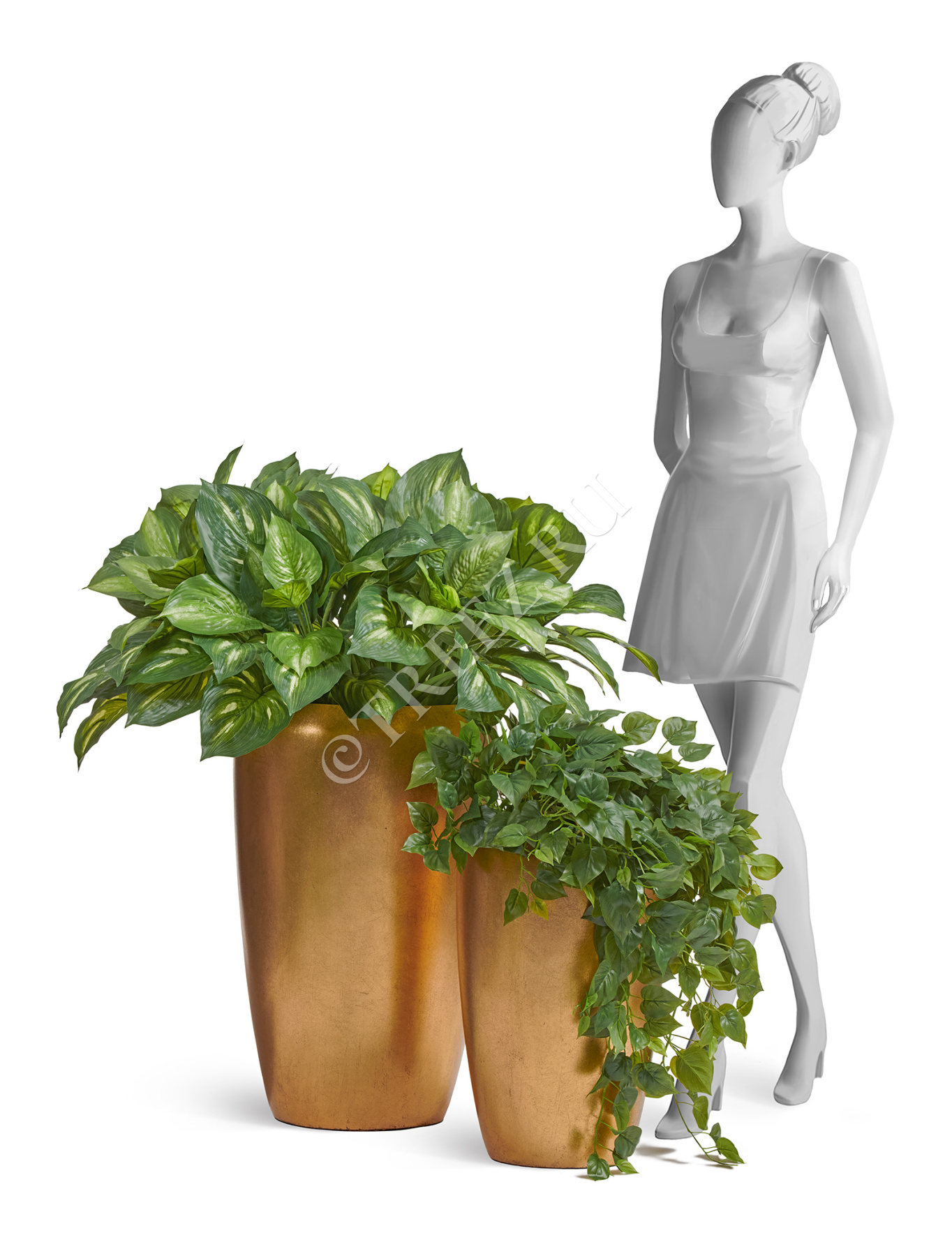 Сет № 127 - Композиция с хостами и филодендроном в золотых кашпо Treez Effectory Metal